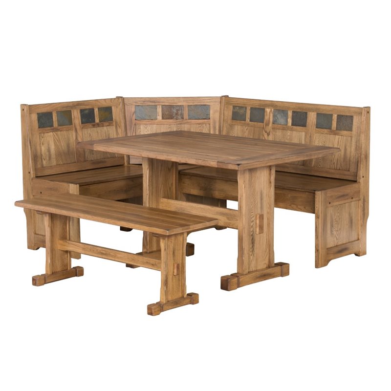 | Sunny Designs - Dining Sets - 0219RO - Finish: Rustic Oak; Natural Slate; Reversible Seat; Storage Space Under Seat; Includes: Corner Bench Seating, Side Bench and Table. Specifications:Product Weight: 249 lbs; Seat Back Height: 16.