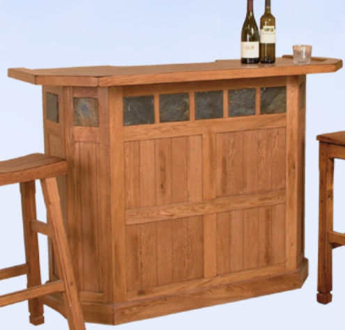 | Turn your basement into your own personal pub with this stunning distressed oak and slate inlay bar. The recessed solid oak top is durable and forgiving of spills. The open interior features several wine racks and glass holders. There are also two drawers and two large cabinets for holding all of your spirits and accessories. Price: 1553.50 ![]() |