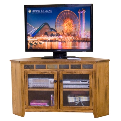 | Sunny Designs 3399RO Sedona Corner TV Console in Rustic Oak |