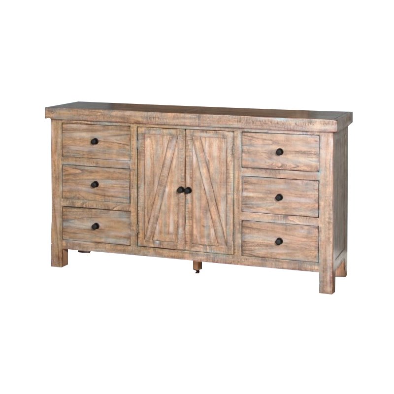 | Sunny Designs - Dressers - 2307WBD - Finish: Weathered BrownMaterials: MindiFarm door accentsSix functual drawers Specifications:Overall Product Dimensions: 38 H x 68 W x 18 DProduct Weight: 161 lbs