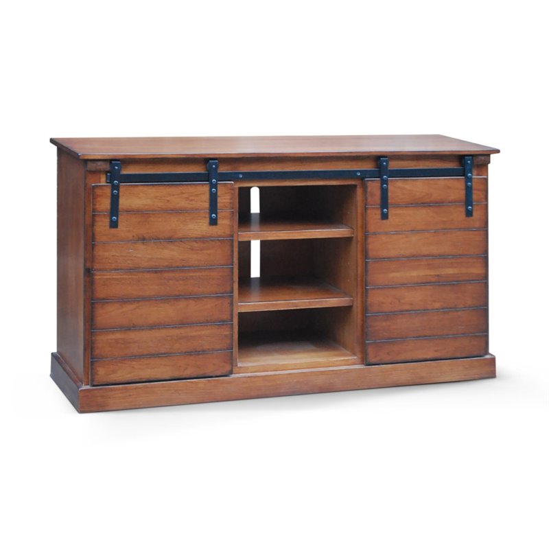 | Sunny Designs - TV Stands - 3577DC - Finish: Dark ChocolateSliding Home Barn door hardwareHand sawn, weathered distressingAdjustable ShelvesSpecifications:Overall Product Dimensions: 35 H x 62 W x 20 DProduct Weight: 157 lbs