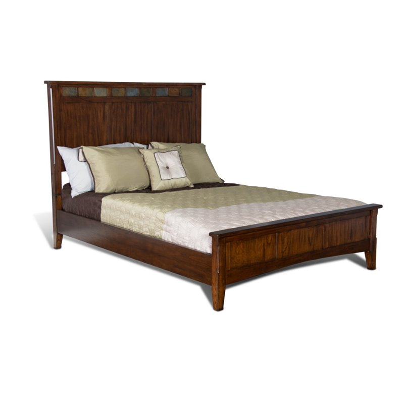 | Sunny Designs - Beds - 2395DCQ - Finish: Dark ChocolateDistressed midy solids and veneersNatural slatesArched base railsSpecifications:Overall Product Dimensions: 56 H x 65 W x 81.9 DProduct Weight: 131 lbs