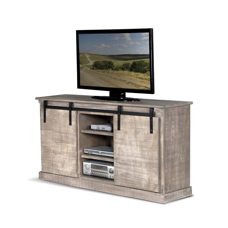 | Sunny Designs - TV Stands - 3577MS - Finish: Mountain SmokeSliding Home Barn door hardwareHand sawn, weathered distressingAdjustable ShelvesSpecifications:Overall Product Dimensions: 35 H x 62 W x 20 DProduct Weight: 157 lbs